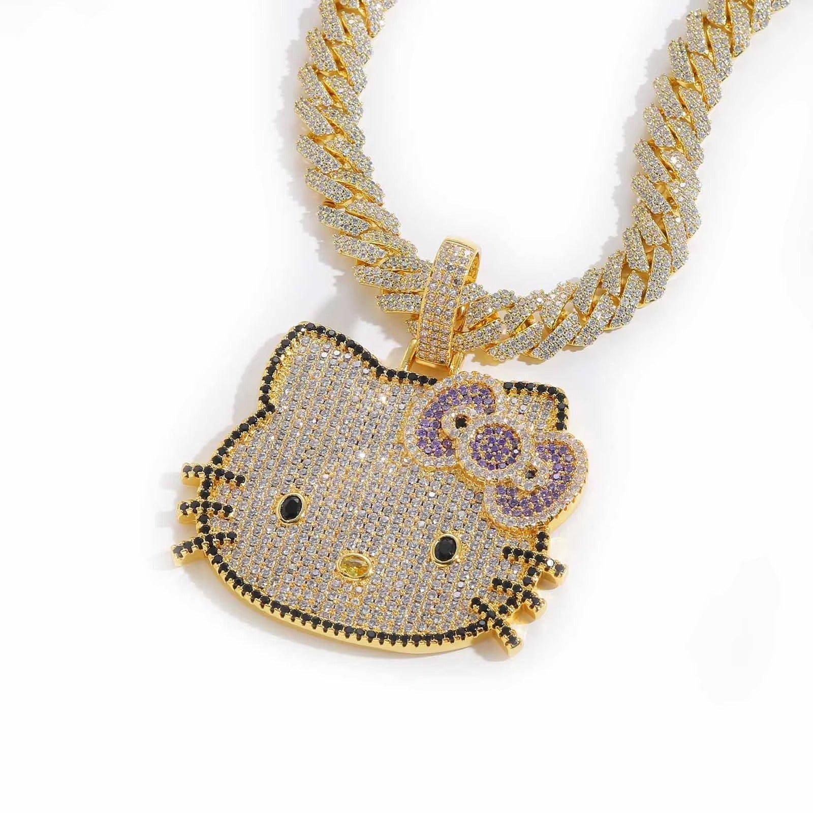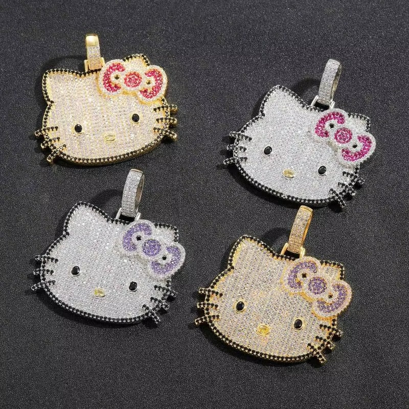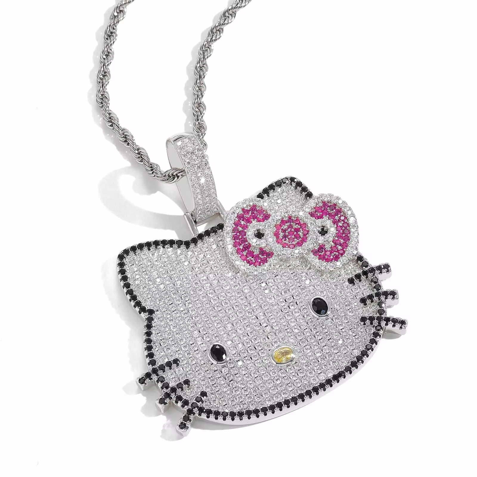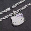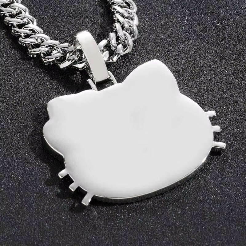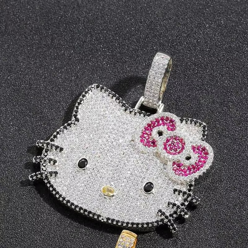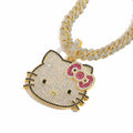 Each pendant features a detailed Hello Kitty face encrusted with 5A+ cubic zirconia stones, catching the light from every angle for a luxurious sparkle. Available in multiple color finishes, it’s the ultimate statement piece for both everyday wear and standout occasions.
