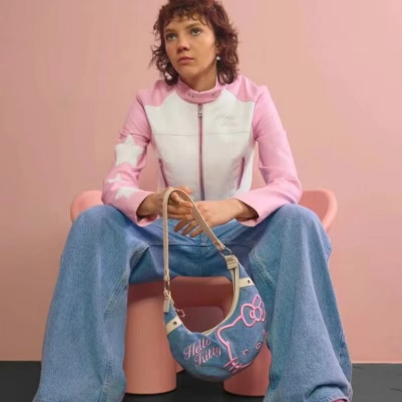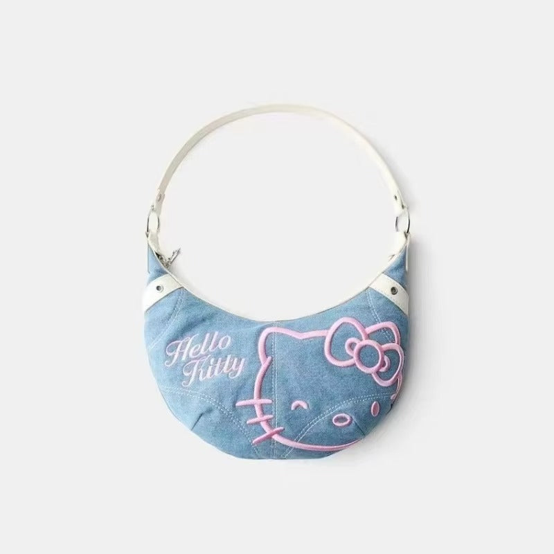 Casual, stylish, and effortlessly cute—this Hello Kitty Denim Handbag is your go-to accessory for everyday outfits. Made with sturdy denim and detailed with soft pink Hello Kitty embroidery 🎀, it’s both durable and adorable. The clean white strap adds a chic contrast, making it perfect for daily wear.